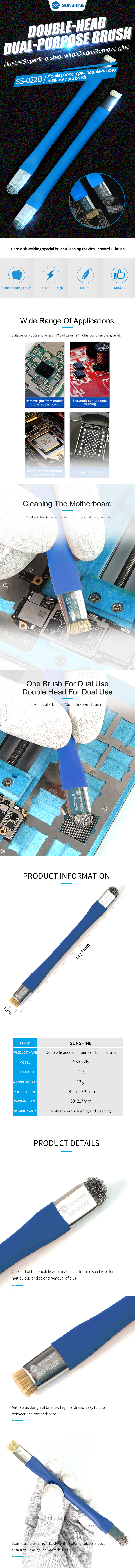 SUNSHINE SS022B Safe Brush AntiStatic Motherboard PCB Cleaning Brush for Mobile Phone Repair Tools Kit Ferramentas Grade A Weight005 X 1 = 005 Kg. 2pcs SUNSHINE SS022B Brush AntiStatic Motherboard PCB Cleaning Brush 350. Pembayaran mudah, pengiriman cepat & bisa cicil 0%.