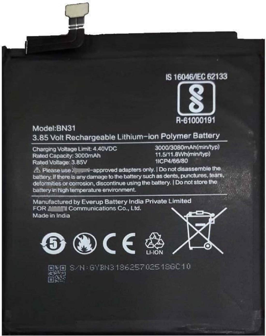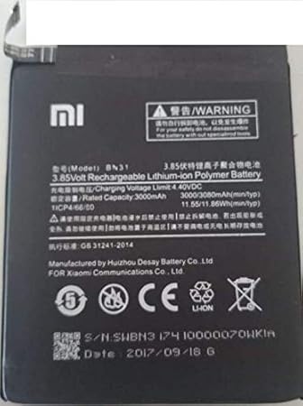 Bn31 3000 Mah 3080 Mah Battery For Xiaomi Redmi Y1 Amazon In Electronics