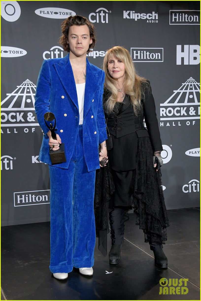 Harry Styles Helps Induct Stevie Nicks Into The Rock Roll Hall Of Fame Photo Harry Styles Stevie Nicks Pictures Just Jared Jr