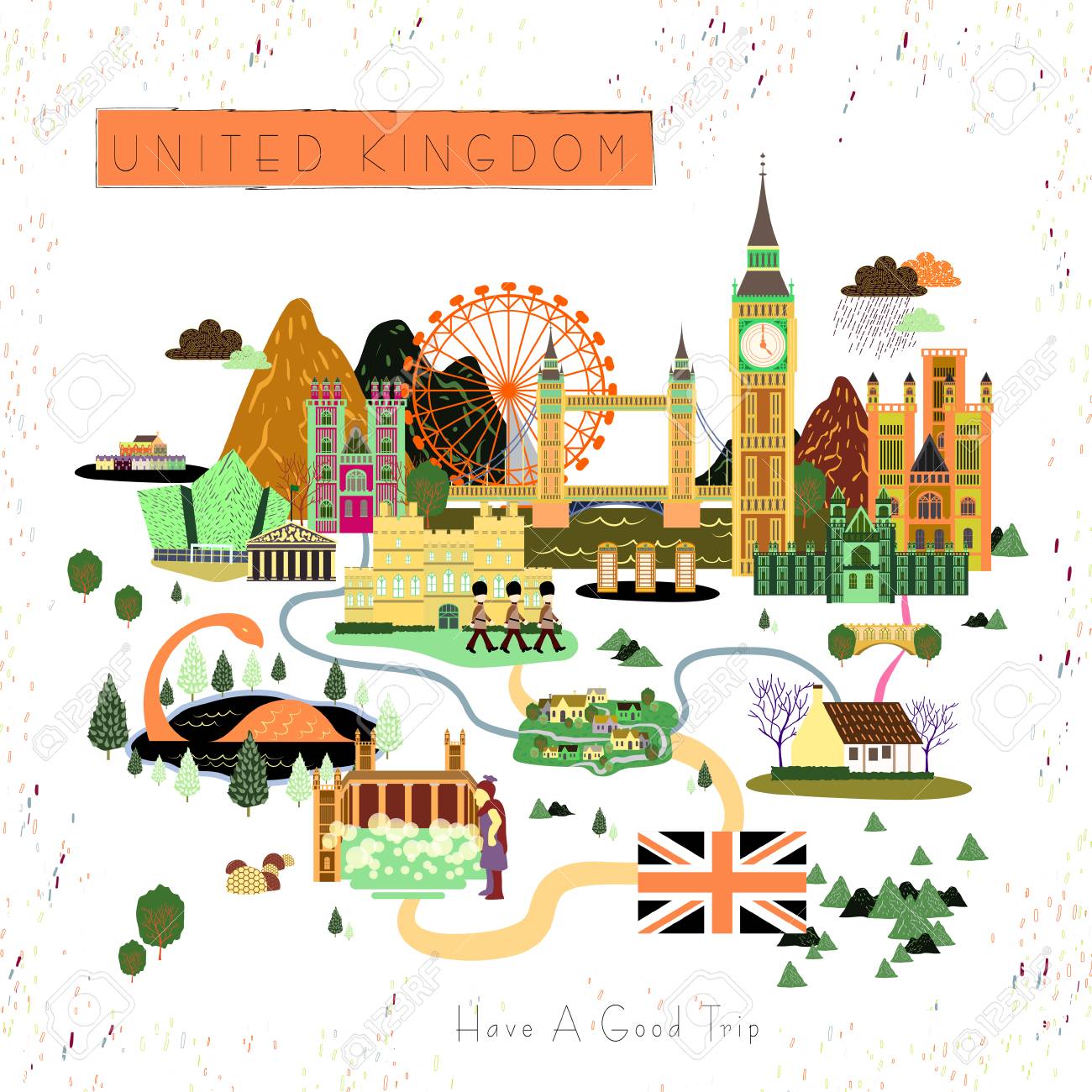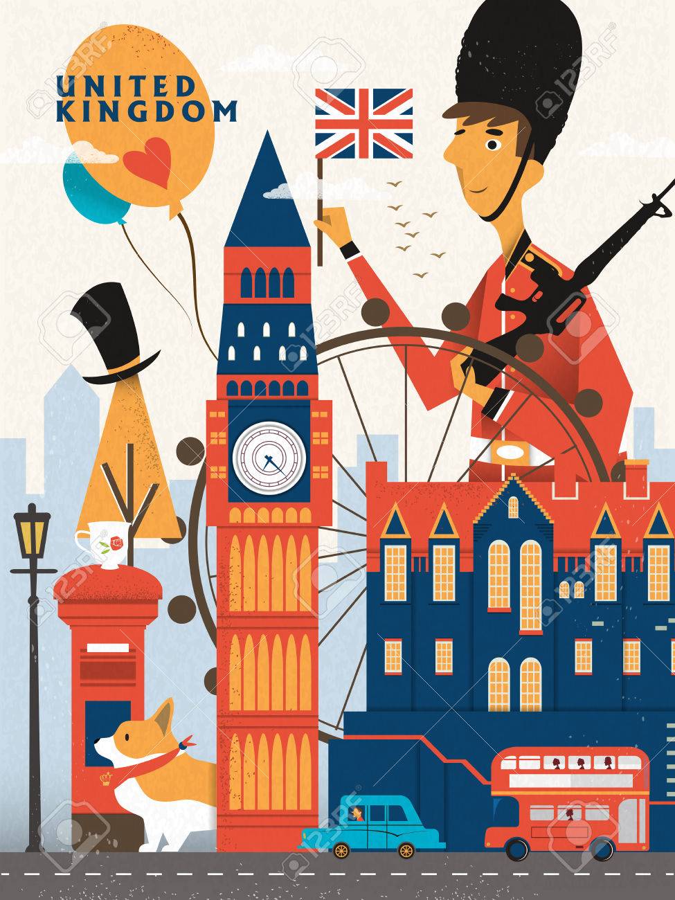Lovely United Kingdom Travel Poster With Specialties Royalty Free Cliparts Vectors And Stock Illustration Image