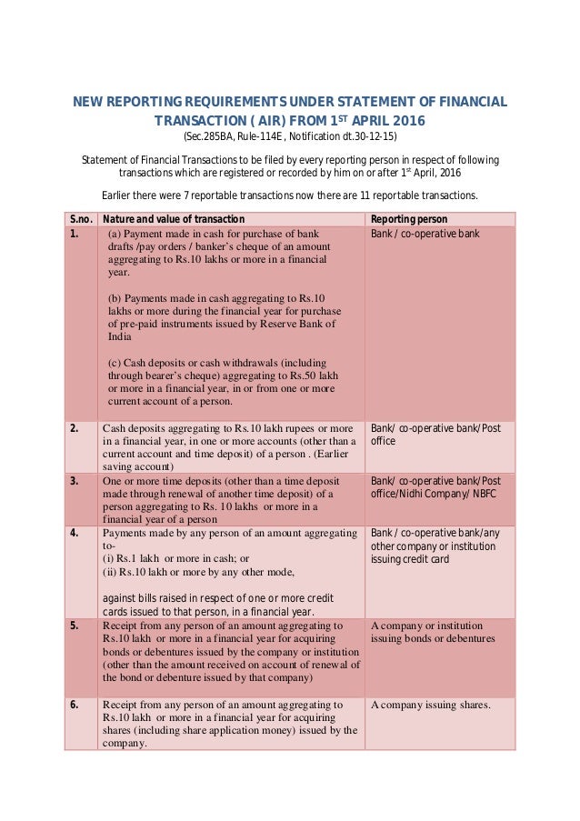 New Reporting Requirements Under Air Income Tax Wef 1 4 16