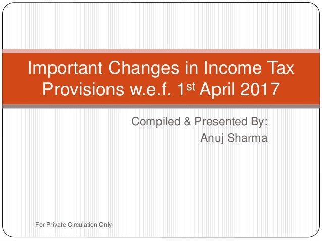 Important Changes In Income Tax Provisions W E F 1st April 17