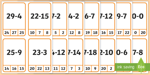 Subtraction From 30 Peg Cards Subtraction From 30 Peg Cards