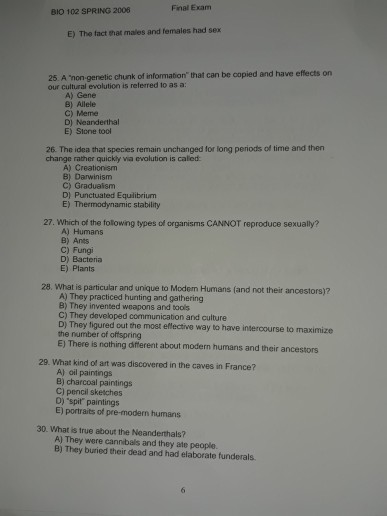 Solved Bid 102 Spring 06 Final Exam D South America E Chegg Com