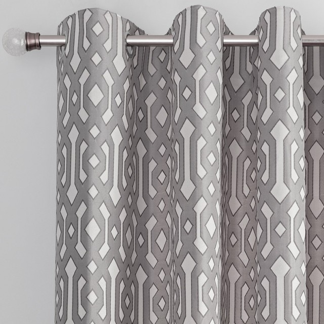 Argos Home Jacquard Geo Lined Eyelet Curtains Flint Grey Ebay