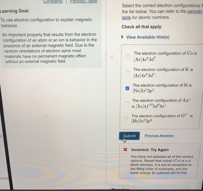 Solved Learning Goal To Use Electron Configuration To Ex Chegg Com