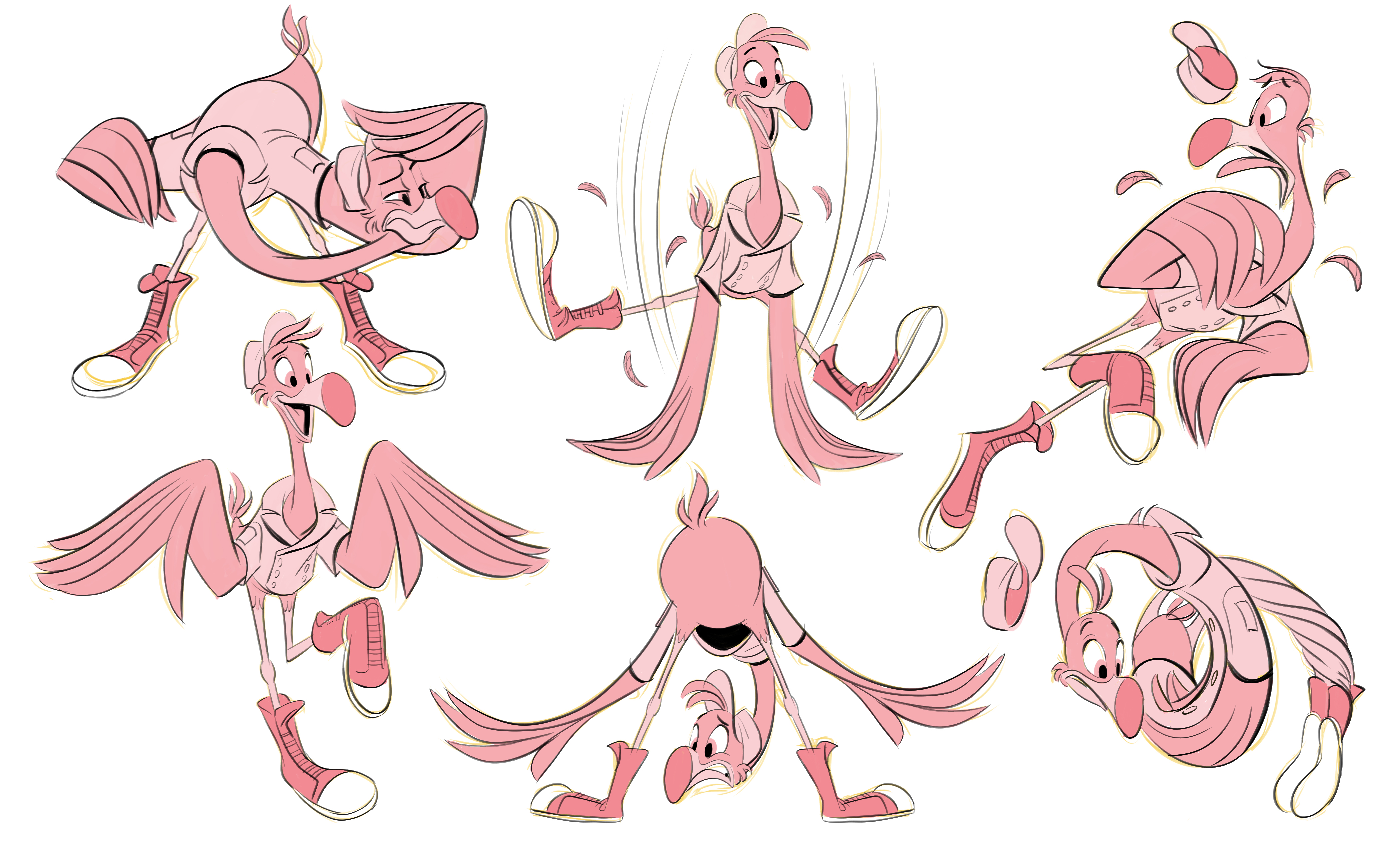 The following list below is an alphabetical list of the major and recurring animated characters in Life history by the Walt Disney universe of animated shorts, feature films, and television series which were based on films by Walt Disney Animation StudiosSome of the animated characters may have been included in their very own Disney marketing franchise, which includes the Disney Princesses. Freddy (TOTS) Freddy Fredlin is a flamingo and one of the two main characters in the Disney Junior animated series TOTS He is a TOTS baby deliverer and Pip 's best friend and partner. Freddy is a coral pink flamingo He has dark yellow irises and a golden yellow beak with a black tip Freddy wears his TOTS uniform, which is a blue shirt with white buttons He also wears a light blue cap and smelly navy blue sneakers which smell like rotten eggs.