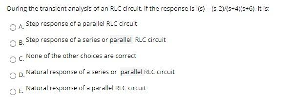 Solved Question 2 During The Transient Analysis Of An Rlc Chegg Com