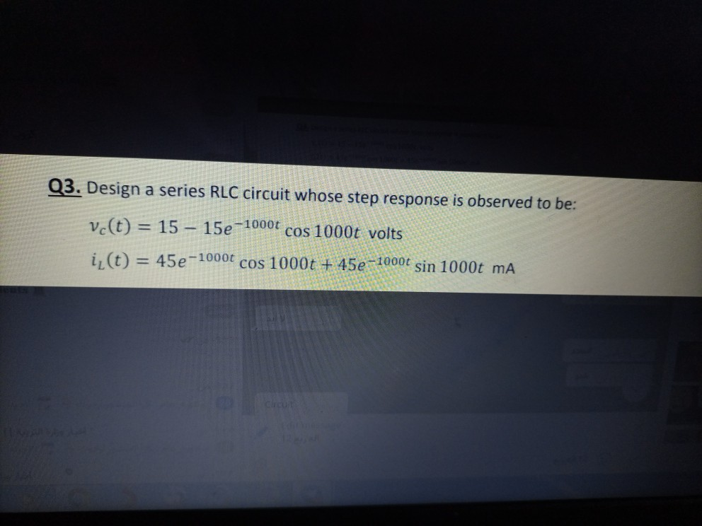 Solved Q3 Design A Series Rlc Circuit Whose Step Respons Chegg Com