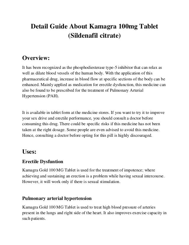Information About Kamagra 100mg Tablet