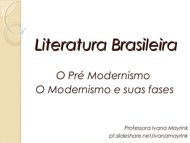 O prémodernismo representa, na literatura brasileira, um período de transição, já que, de um lado, ainda se faziam fortes as tendências artísticas do realismo, do naturalismo, do. Portanto, um Nacionalismo CríticoAmargo (5). O PréModernismo foi uma fase literária brasileira que marcou a transição entre o Simbolismo e o movimento modernista, que se iniciou com a Semana da Arte Moderna em 1922 Está estudando Literatura?.