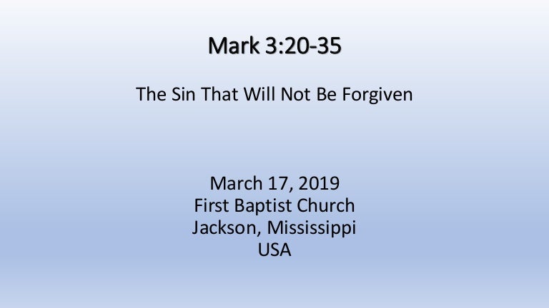 03 17 19 Mark 3 35 The Sin That Will Not Be Forgiven