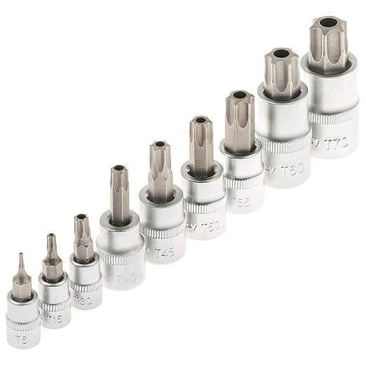 3/8in Drive Set Torx Bit Torx Driver Socket Set Model #CMMT Compare;. 1 viewed per hour 7 product ratings 49 average based on 7 product ratings 5 5 Stars, 6 product ratings 6 4 4 Stars, 1 product rating 1 3 3 Stars, 0 product ratings 0 2 2 Stars, 0 product ratings 0 1 1 Stars, 0 product ratings 0. This is a 9Piece Torx Plus Bit Set Includes 9 of the most popular Torx Plus sizes for automotive applications Vinyl holder for storage included Some common torx plus applications include GM transmission bell housing bolts, Ford seat belt anchors and Ford pickup bed bolts;.