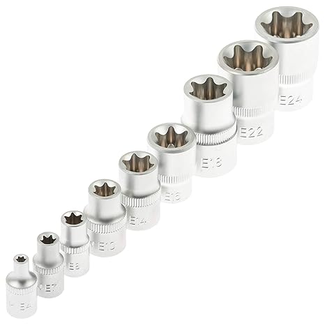 GEOMETRIA IL DETTAGLIO CHE FA LA DIFFERENZA con diametro compreso tra 6 mm e 10 mm e lunghezze comprese tra 100 mm e 300 mm La cava Torx assicura stabilità e sicurezza. Torx Plus is designed for high torque transmission This means that higher torques can be used to securely tighten fasteners without incurring additional wear and tear on the tools High torque capability is also very important in service situations where corrosion may increase the torque required to loosen a fastening. Husky External Torx Sockets are specially designed to be used with Torx style fasteners commonly found on motorcycles, import vehicles, disc breaks, and electronics This set contains 13 different sizes spanning from E4 to E24 using 1/4 in, 3/8 in and 1/2 in drives.