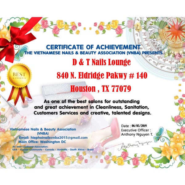 We are a highend nail salon and spa in St Louis Park, MN Our spa quality products intertwined with unmatchable service is what makes our salon stand out from the rest We specialize in a multitude of services including gel polish, pink & white, gel powder, exfoliants, mineral baths, paraffin wax, essential oils, and hot stone massages. Cross Streets Near the intersection of Highway 111 and Arabia St;. D & T Nail Spa, LLC is an Arkansas LimitedLiability Company filed On August 26, 19 The company's filing status is listed as Good Standing and its File Number is The Registered Agent on file for this company is Dieu Ta and is located at 04 W Walnut Street, Rogers, AR.