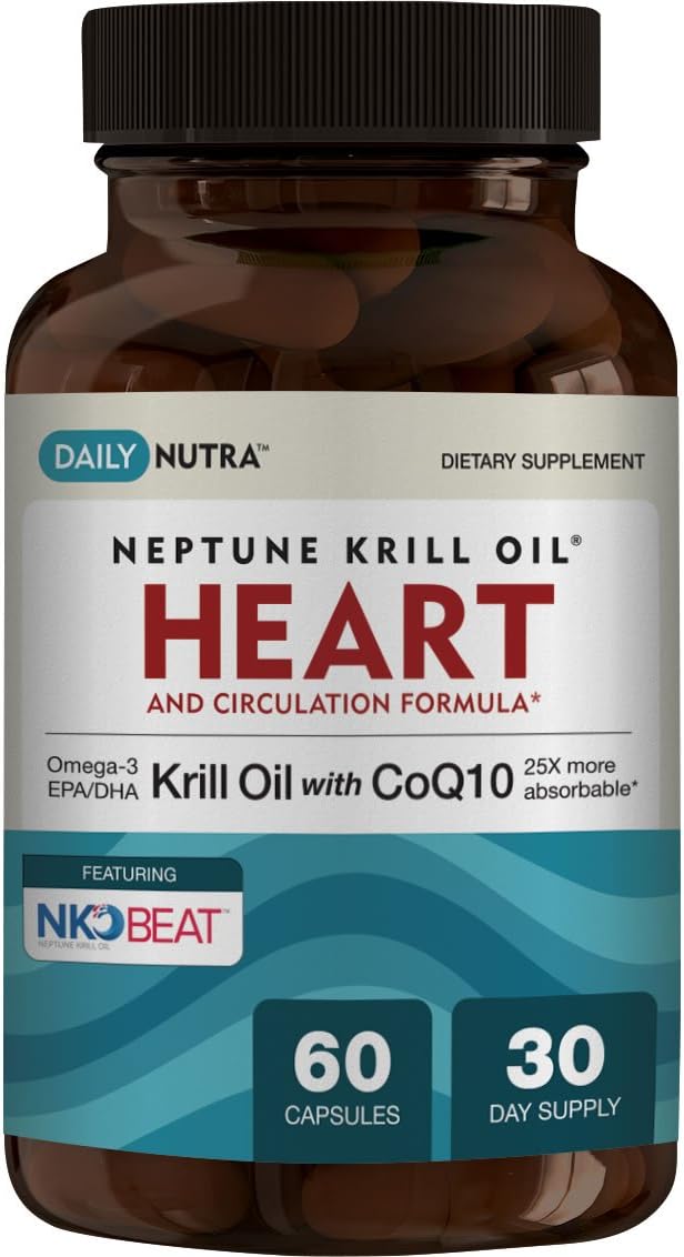 Amazon Com Krill Oil Coq10 Heart Formula Lower Blood Pressure Cholesterol And Triglycerides 30 Day Supply By Dailynutra Health Personal Care