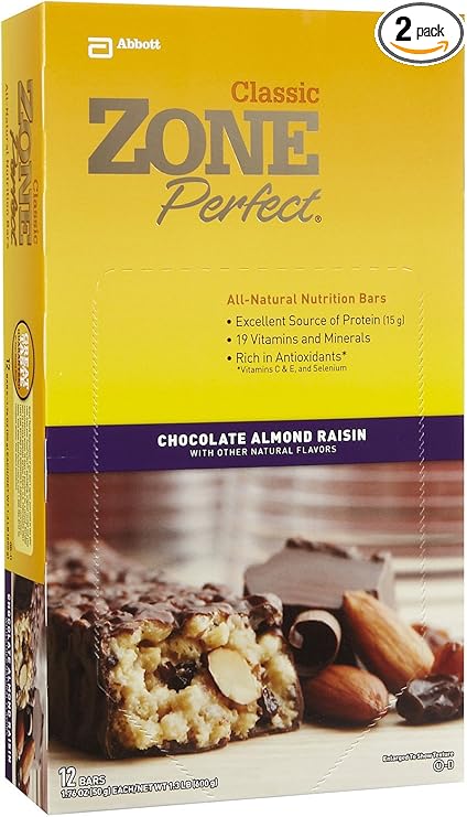 Amazon Com Zone Perfect All Natural Nutrition Bar Chocolate Almond Raisin 1 76 Ounce Bars In 12 Count Boxes Pack Of 2 Health Personal Care