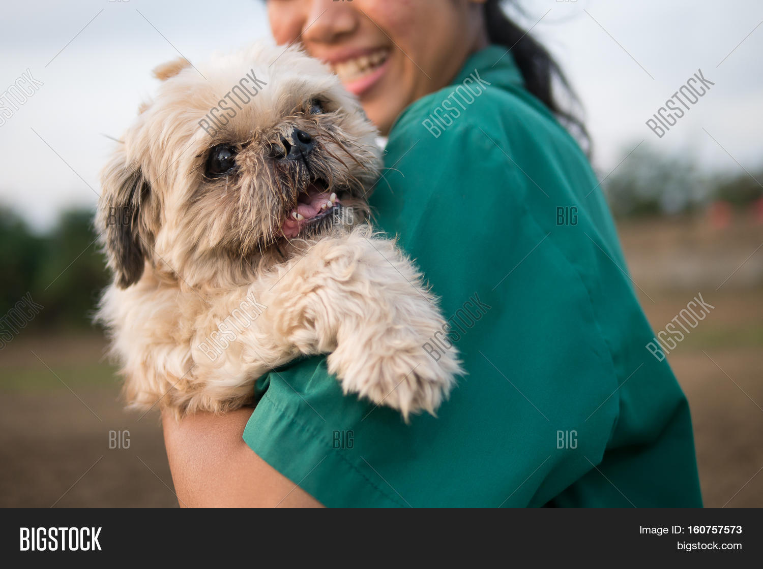 Old Ugly Dog Owner Girl Give Stock Photo Edit Now