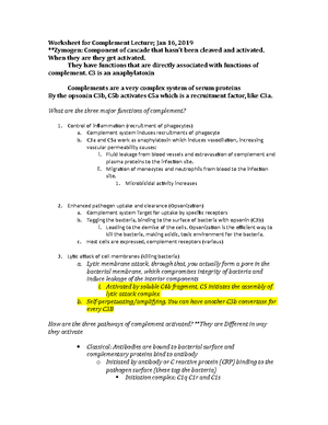 Worksheet For Complement Lecture Jan 16 19 Studocu