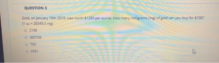 Solved Question 3 Gold On January 16th 19 Was Worth Chegg Com