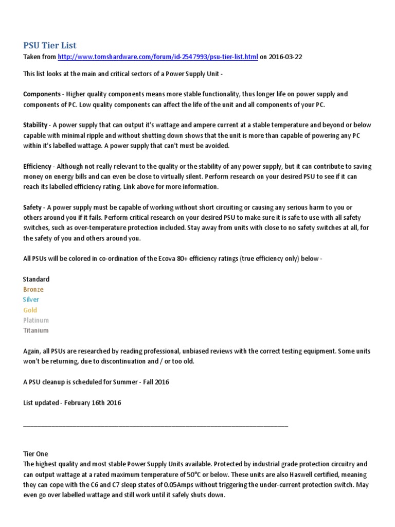 Psu Tier List Power Supply Electrical Engineering