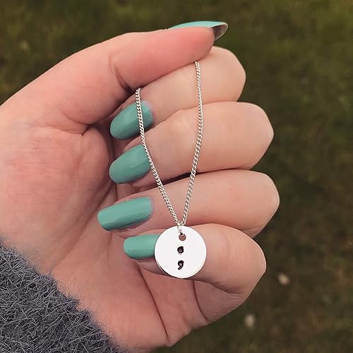 Semicolon Necklace Silver Gold Semi Colon Handmade Hand Stamped Mental Health Suicide Depression Awareness Punctuation Gift Unisex Jewelry Amazon Co Uk Handmade