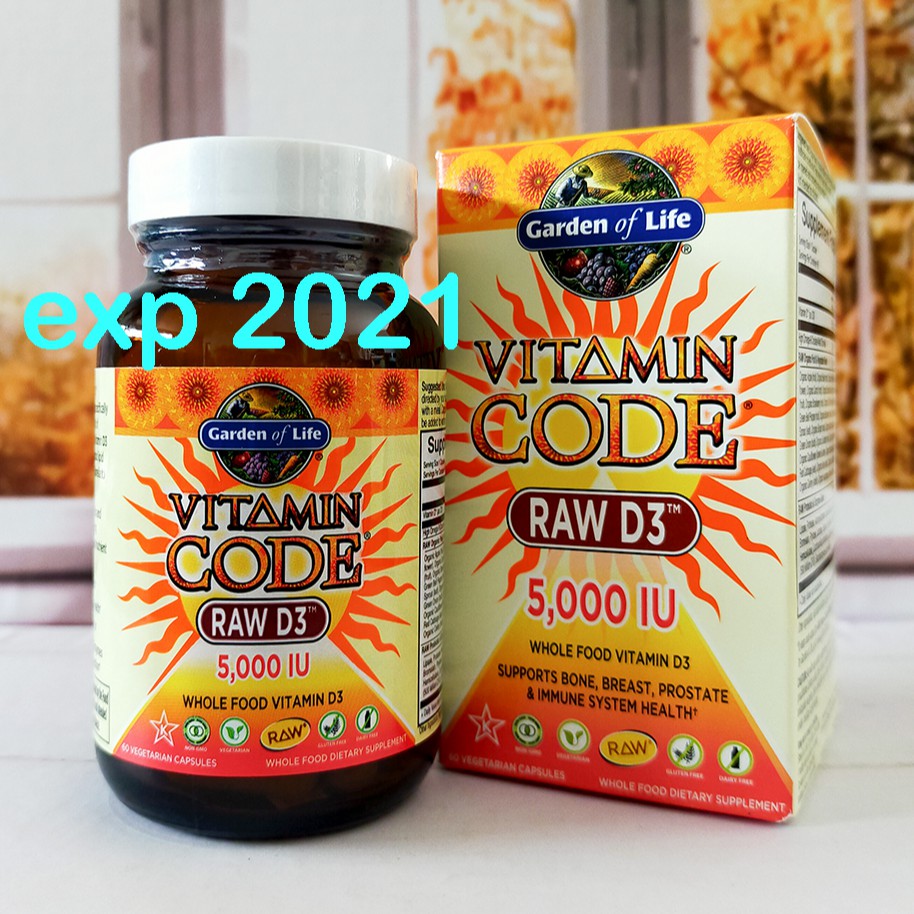 Garden of Life Vitamin Code Raw D3 5,000 IU 60 Vegetarian Capsules Retail box not included Best By March 22. Garden of Life Vitamin D, Vitamin Code Raw D3, Vitamin D 5,000 IU, Raw Whole Food Vitamin D Supplements with Chlorella, Fruit, Veggies & Probiotics for Bone & Immune Health, 60 Vegetarian Capsules 48 out of 5 stars 5,093. All Garden of Life vitamins are made from real, whole foods with nutrients that your body is able to easily recognize Vitamin Code Raw D3 00 IU Capsules $19 Add to Cart Add to Wish List Vitamin Code Men Capsules Vitamin Code Raw D3 5,000 IU 60 Capsules $2239 $2799 Add to Cart Add to Wish List Vitamin Code Raw Vitamin K.