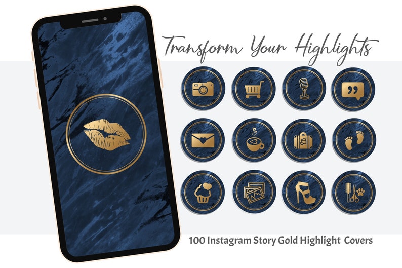 Navy Blue And Gold Instagram Story Highlight Icons Instagram Etsy