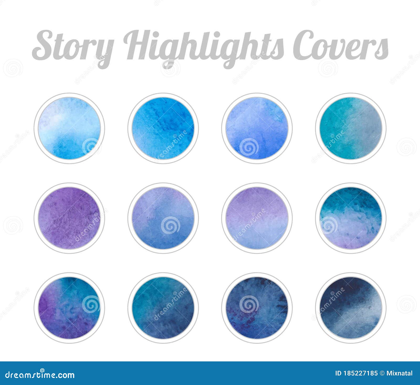 Set Of Story Highlights Covers Icons Colorful Watercolor Background Blue And Purple Bright Colors Stock Vector Illustration Of Paint Story