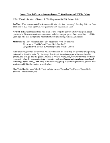 Booker T Washington Vs Web Dubois And Rappers Lesson Plan