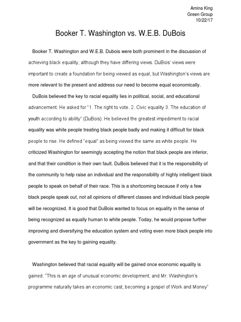 Amina King Booker T Washington And Web Dubois Essay Docx W E B Du Bois Citation