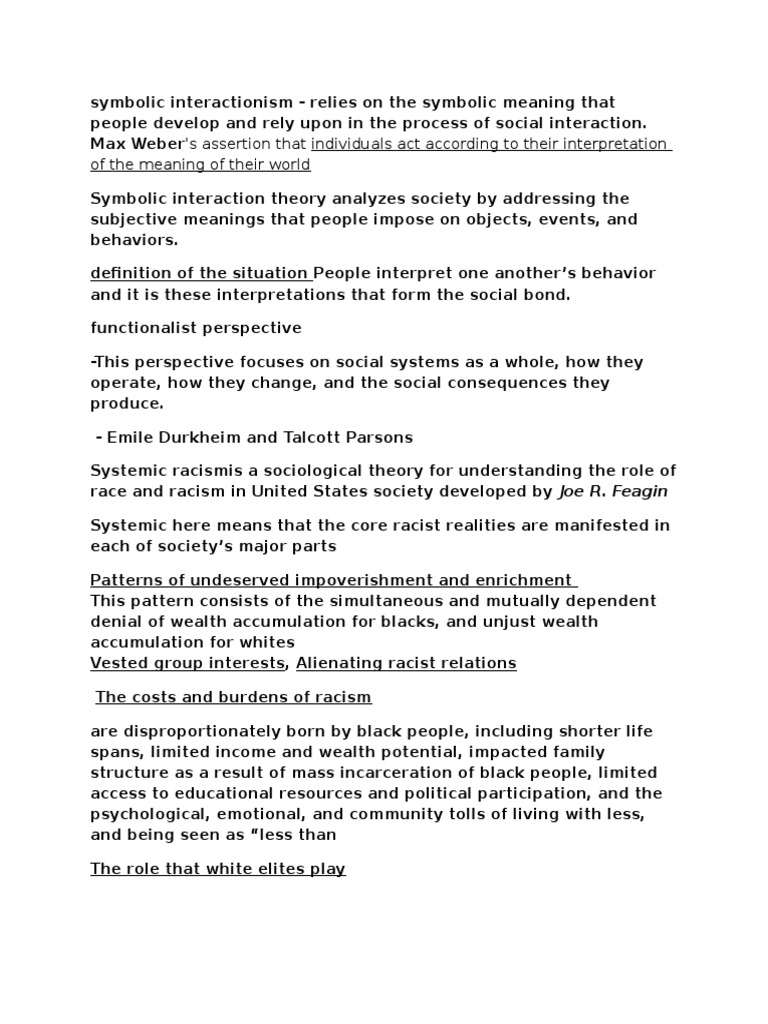 Soc100h5 Textbook Notes Chapter 7 Symbolic Interactionism Institutional Racism