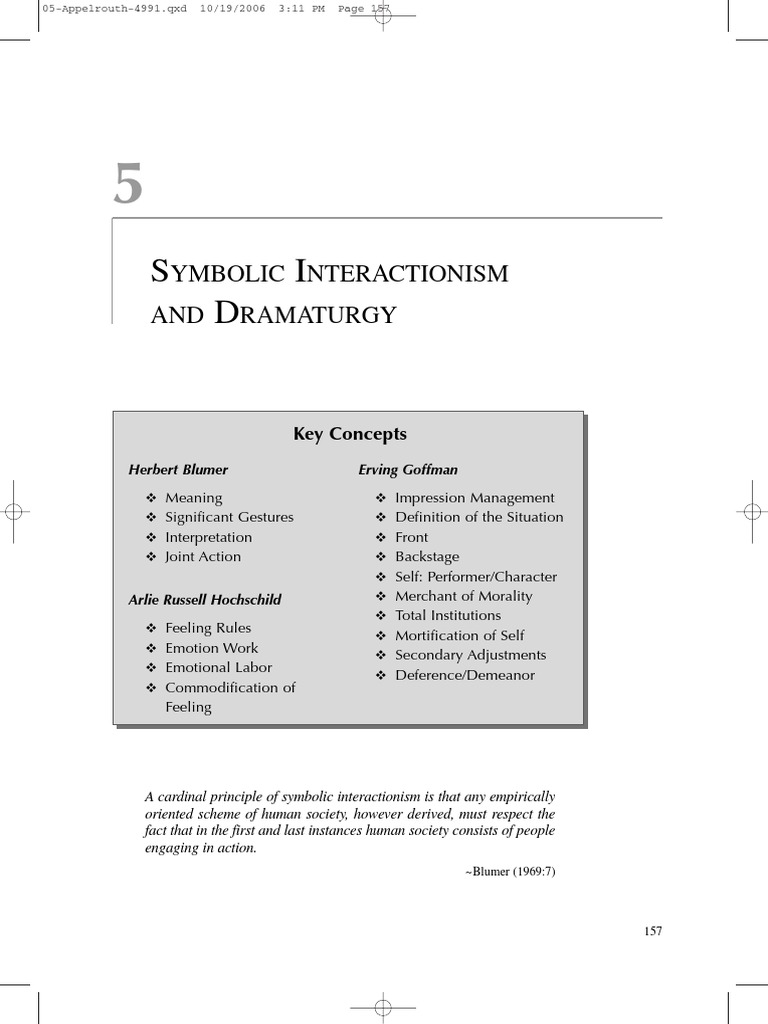 Appelrouth Symbolic Interactionism And Dramaturgy Identity Social Science Sociology