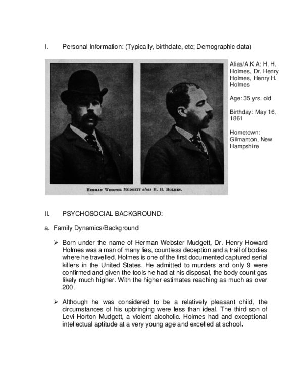 Doc Criminal Profile Of Herman Webster Mudgett Docx Kenji Lu Mori Academia Edu