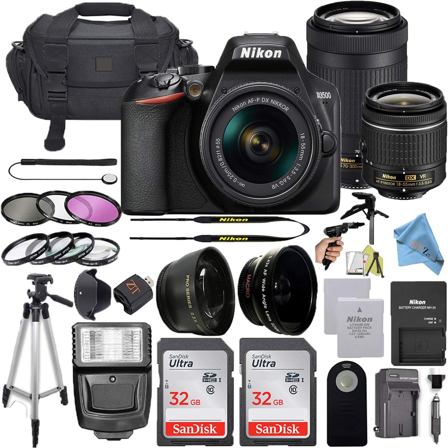 Amazon Com Nikon D3500 Dslr Camera W Af P Dx 18 55mm Vr And 70 300mm Double Zoom Lens Bundle With Travel Case Wide Angle Lens Telephoto Lens Filter Sets 32gb Memory Card And Accessories 11