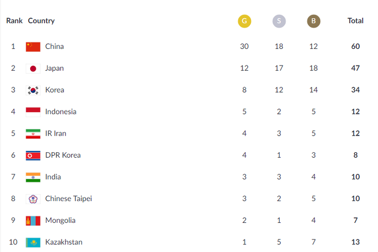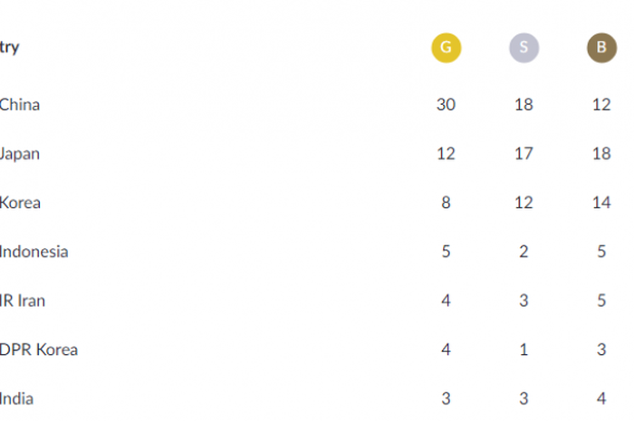 Klasemen Perolehan Medali Asian Games 18 Hingga 21 Agustus Malam
