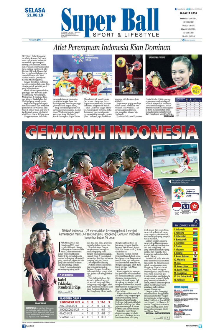 Jual Koran Superball 21 Agustus 18 Gramedia Digital Indonesia