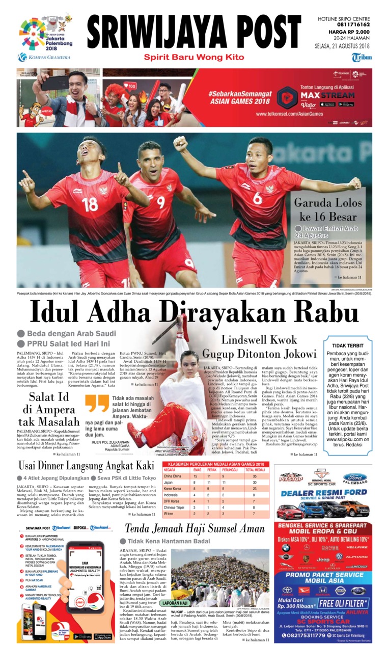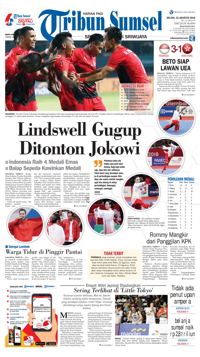 Jual Koran Sriwijaya Post 21 Agustus 18 Gramedia Digital Indonesia