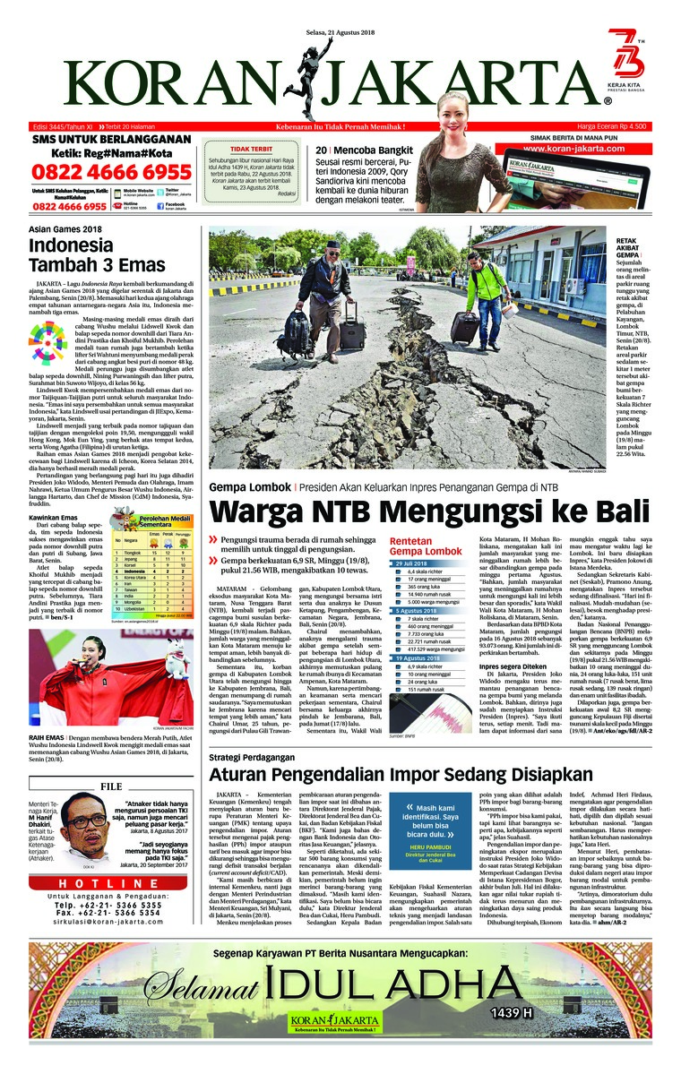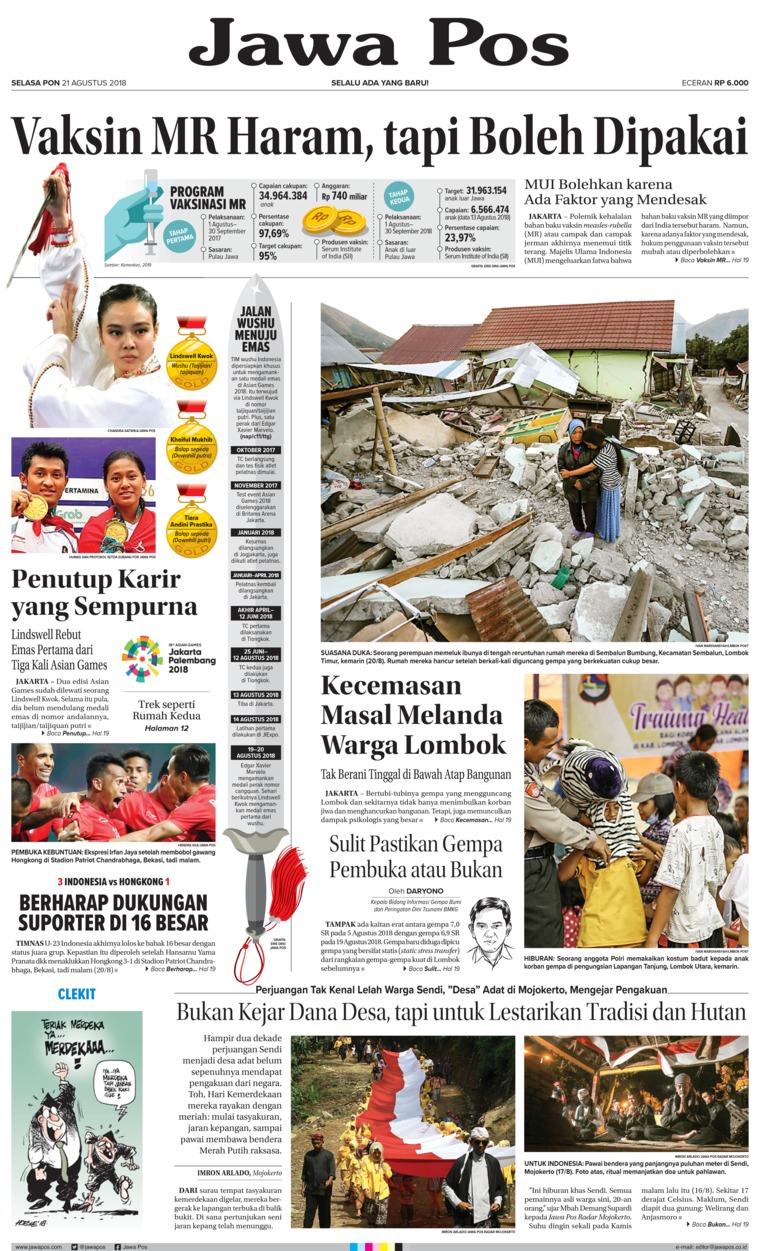 Selasa 21 Agustus 18 MUI VAKSIN MR HARAM, TAPI BOLEH DIGUNAKAN • DARI HALAMAN 1 haram. Updated August 21, 18 — 10 am ← Previous Post Next Post →. 21 Agustus 18 → 1 Pesta Olahraga Asia 18 Asia ke18, adalah acara olahraga multievent regional Asia yang akan diselenggarakan di Indonesia pada tanggal 18 Agustus 2 September 18, di dua kota yaitu Jakarta dan Palembang, serta beberapa tempat sebagai tuan rumah pendukung yang tersebar di provinsi Jawa Barat dan Banten Jumlah.
