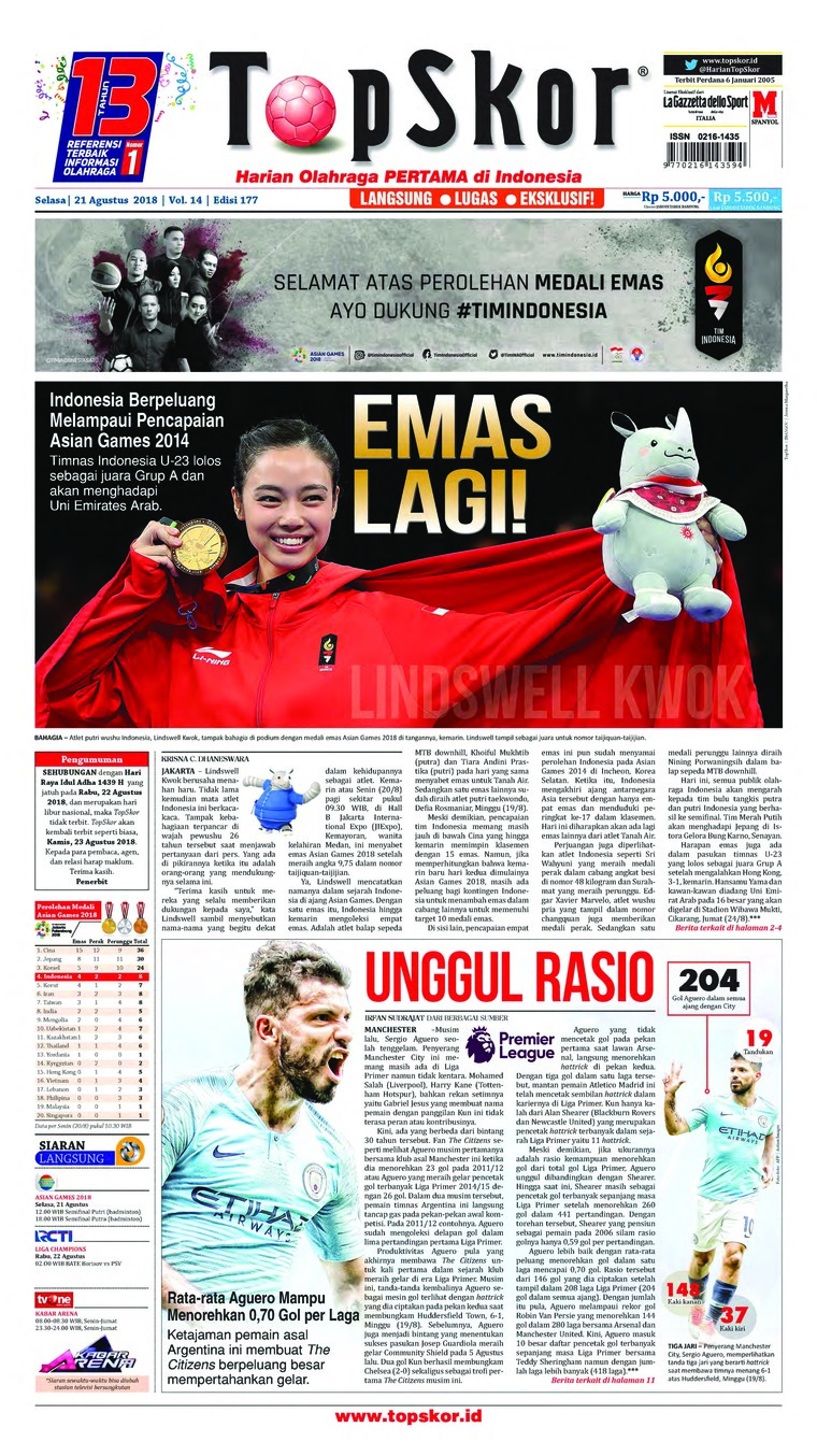 Jual Koran Top Skor 21 Agustus 18 Gramedia Digital Indonesia