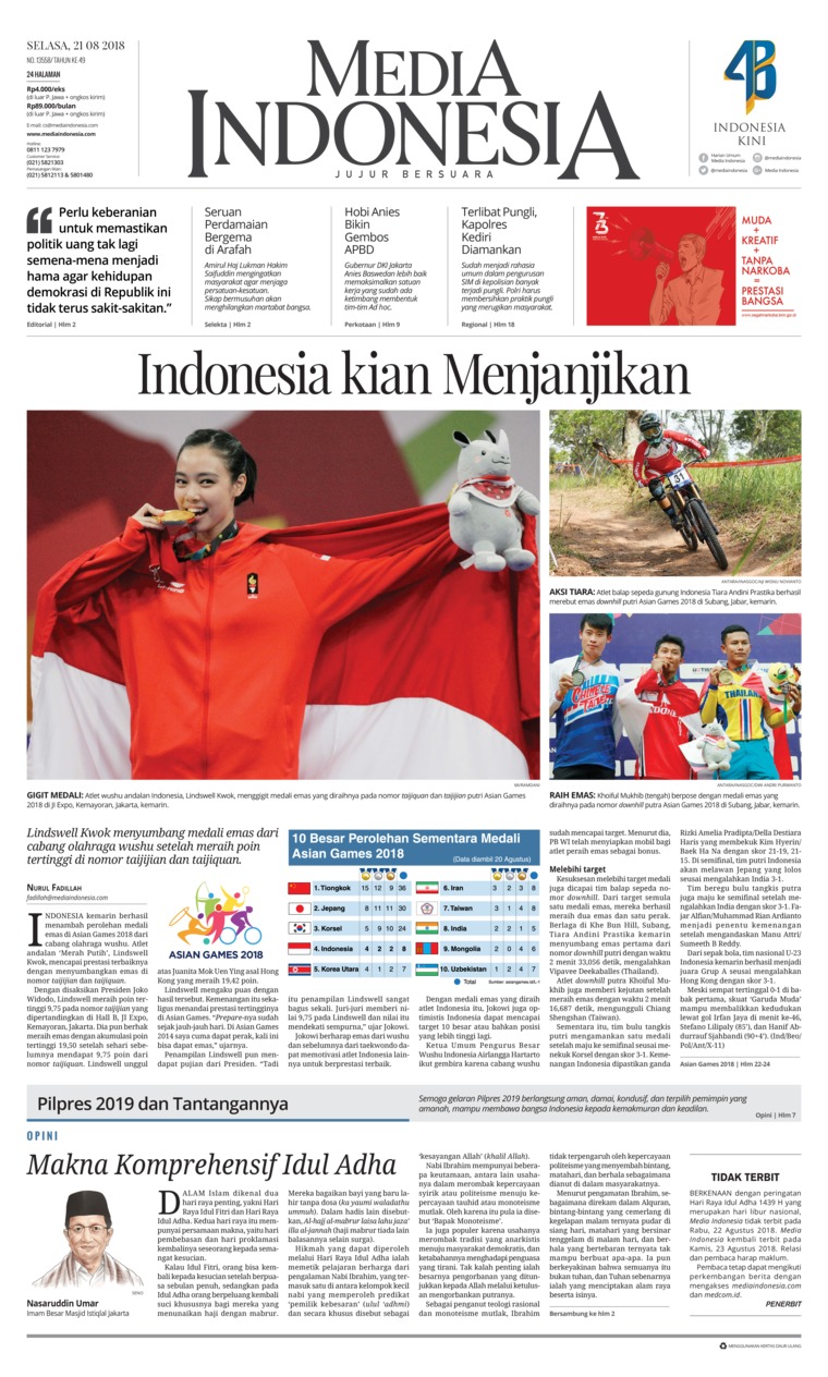 Jual Koran Media Indonesia 21 Agustus 18 Gramedia Digital Indonesia