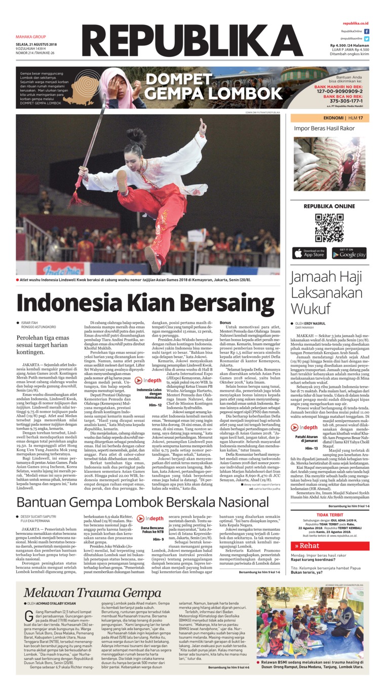 Jual Koran Koran Republika 21 Agustus 18 Gramedia Digital Indonesia