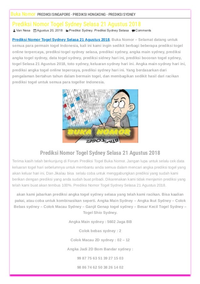 Prediksi Nomor Togel Sydney Selasa 21 Agustus 18
