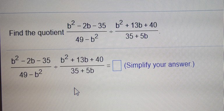 Solved Find The Quotient B 2 2b 35 49 B 2 Divided By Chegg Com