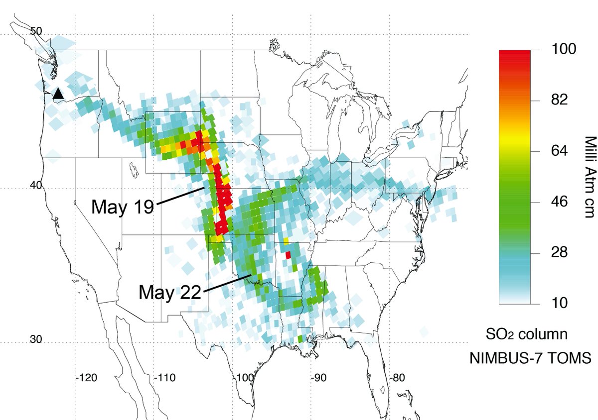 Simon Carn The Mt St Helens Eruption Onthisday In 1980 Spread Volcanic So2 Over The Us But So2 Emissions Were Not Sufficient To Impact Climate T Co Lcmcdqenvp