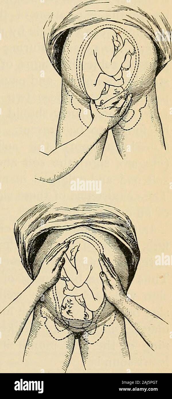 A Manual Of Obstetrics Figs 46 49 Leopold And Sporlins Methods Of Abdominal Palpation And Allows His Fingers To Sink Within The Pelvic Brim When If The Head Be Presenting It May Be Recognized
