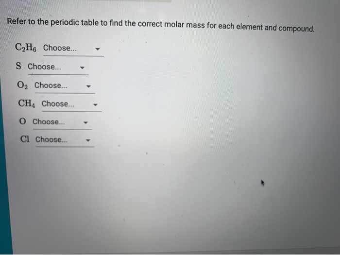 Use the periodic table to identify the molar mass of each element below Answer without doing any calculations. Use this periodic table for calculating molar mass for any chemical formula Options for. The periodic table, also known as the periodic table of elements, is a tabular display of the chemical elements, which are arranged by atomic number, electron configuration, and recurring chemical propertiesThe structure of the table shows periodic trendsThe seven rows of the table, called periods, generally have metals on the left and nonmetals on the right.