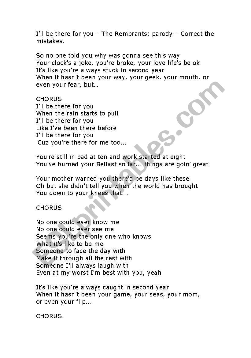 English Worksheets I Ll Be There For You The Rembrandts