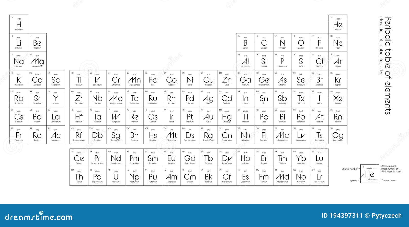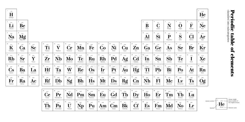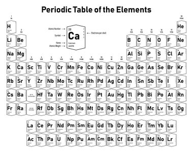 Printable Periodic Table of Elements We’ve brought the latest version of printable periodic table black and white It contains 113, 115, 117 & 118 newly added elements with names symbols & atomic number Square brackets have an interval which shows the lower and upper bounds of the standard atomic weight of the elements. Dynamic Interactive Periodic Table of Elements with name, symbol, atomic mass Chemical, Physical, Atomic and Thermal Properties & Trends Upto Date latest full Modern Periodic Table with dynamic layouts Know all element Facts, Electronic Configuration, oxidation state, isotopes Interactive periodic table with all properties Explore the periodic table of the chemical elements using Dynamic. Download Periodic Table of the Elements Vector Illustration shows atomic number symbol name and atomic weight stock vector shows atomic number symbol name and atomic weight Commercial use License Small €1,00 JPG 640 x 411 px Print size 54 x 35 cm @300 dpi Black and white monochrome Periodic Table of the Elements Bright.