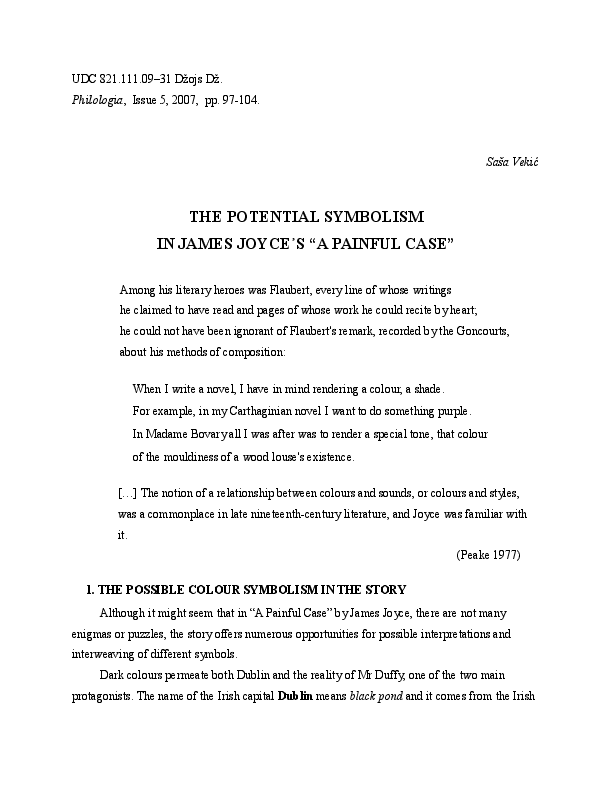 The Potential Symbolism In James Joyce S A Painful Case Docx Sasa Vekic Academia Edu